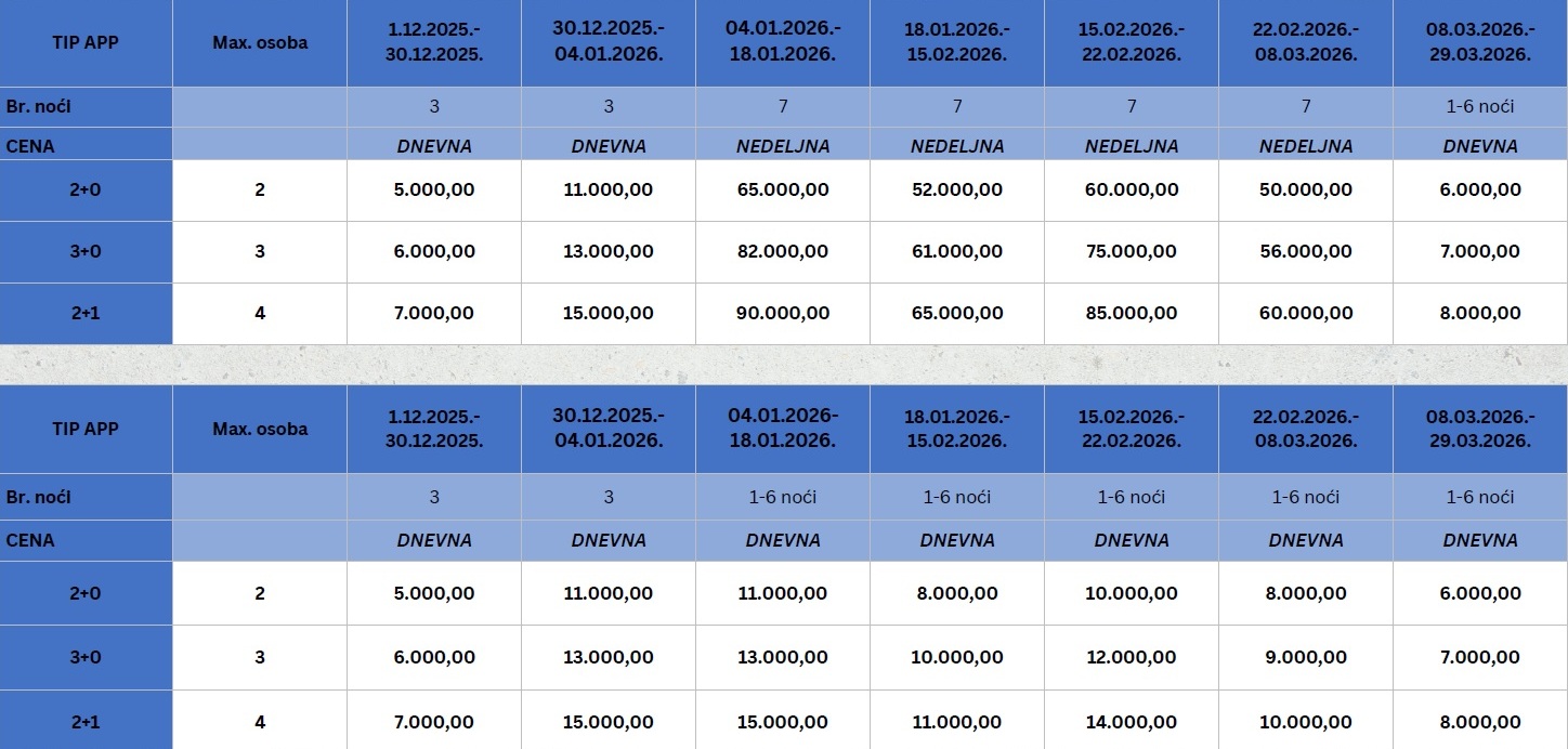 НАПОМЕНА: боравак кућних љубимаца у апартманима није дозвољен